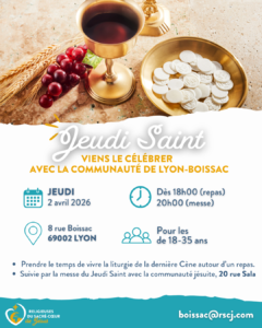 1 fois par mois, la communauté de Lyon Bellecour et la coloc’Magis « Unifie ta vie » ouvrent leurs portes pour l’eucharistie suivie d’un repas partagé à l’occasion du jeudi Saint !